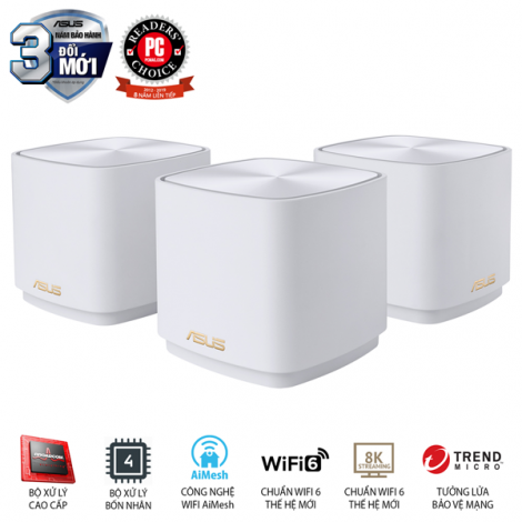Asus XD4 (W-3-PK) bao gồm một bộ định tuyến ASUS AX1800 WiFi 6 và hai nốt mở rộng, được trang bị các công nghệ độc đáo mang đến cho bạn kết nối WiFi cực nhanh, đáng tin cậy và an toàn — bất kể ở trong hay ngoài nhà bạn!